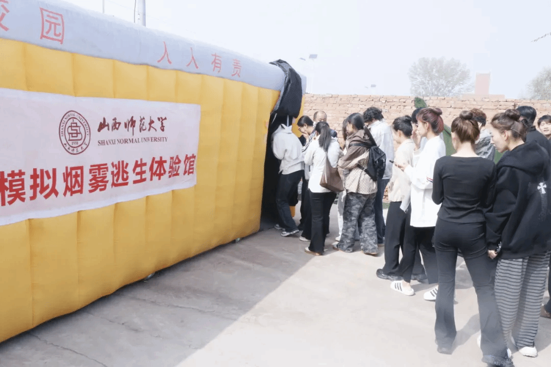 本次演练特别设置了模拟烟雾逃生馆体验环节,同学们进入高度还原真实火场的模拟场景,严格按照“弯腰低姿、湿毛巾捂口鼻”的规范要求,沿安全路线快速有序撤离,在沉浸式体验中熟练掌握火场逃生的正确姿势与路线选择,进一步强化应急避险实战能力。