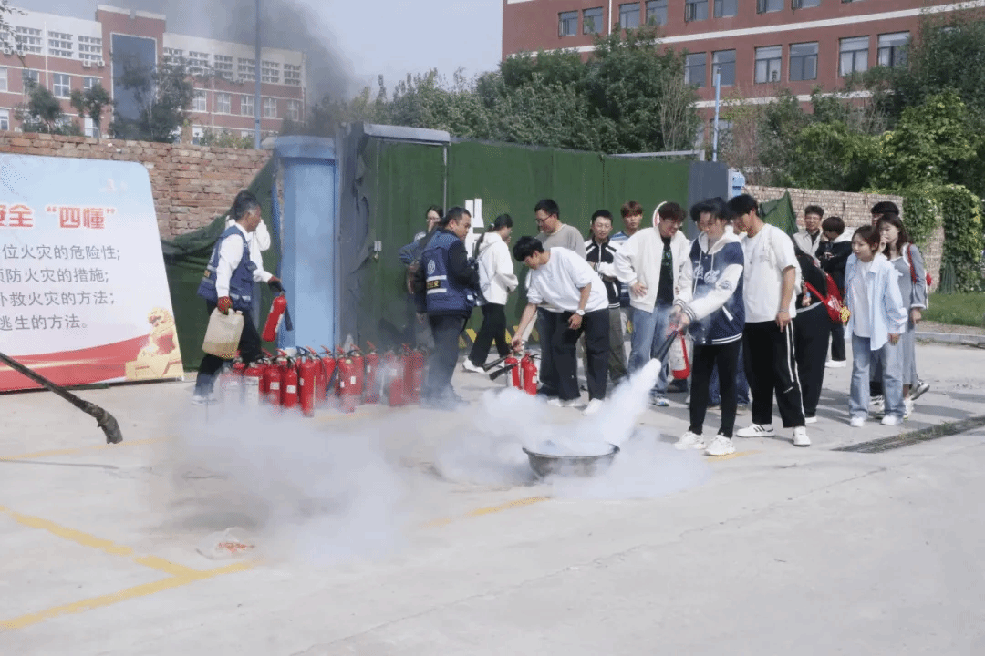 理论讲解结束后,演练进入实战操作环节。在消防老师的专业指导下,同学们有序参与灭火器实操训练,严格遵循“提、拔、握、压”四个关键步骤,通过亲手扑灭模拟火源,切实掌握灭火器材使用技巧,有效消除对消防设备的陌生感。