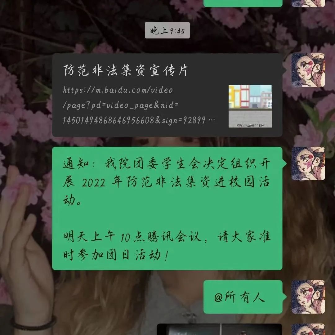 非法金融广告、团伙传销,非法集资、电信诈骗、银行卡盗刷以及校园不良网络借贷款等,都是现如今危害较大的违法诈骗活动。提前为支部成员打预防针,防止陷入网络骗局。