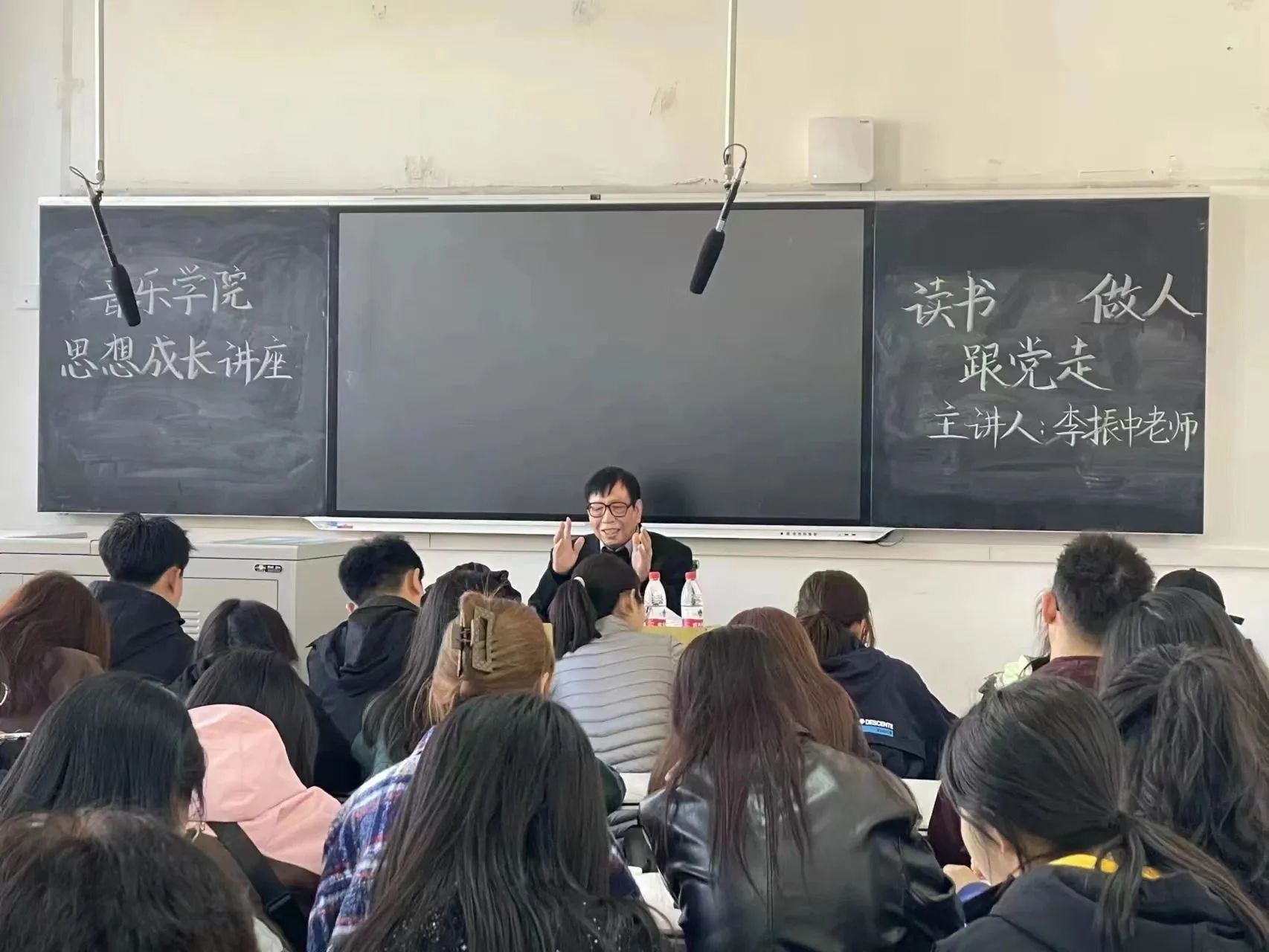 首先,李振中老师围绕党的发展历程讲述了中国共产党带领人民群众从站起来、富起来到强起来的伟大飞跃,告诫学员们要时刻牢记党的初心使命,坚定理想信念,践行党的宗旨,做勇于担当的时代青年。在“读书”方面,李老师强调要读好书、好读书、善读书,从书本和生活中汲取知识。同时李老师提出了五个读书方法:“勤、专、恒、精、思”,勉励同学们要珍惜时间,学会思考,提高自身判断力;在“做人”方面,李老师提出青年要做到德、智、体、美、劳五项全面发展。此外,李老师引用了习近平总书记提出的重要指示,告诫学员们要坚定不移听党话、跟党走,努力成长为堪当民族复兴重任的时代新人。