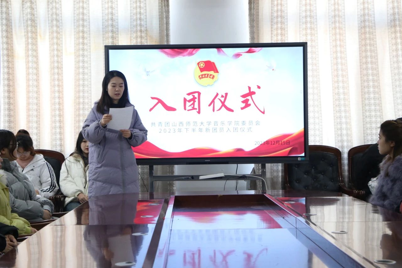 入团仪式在庄严的国歌声中拉开序幕。随后,主持人宣读了2023年下半年新发展团员名单,院团委工作人员向新团员颁发了团员证并佩戴团徽,在团旗前,新团员们举起右拳,庄严宣誓:“我志愿加入中国共产主义青年团,....”