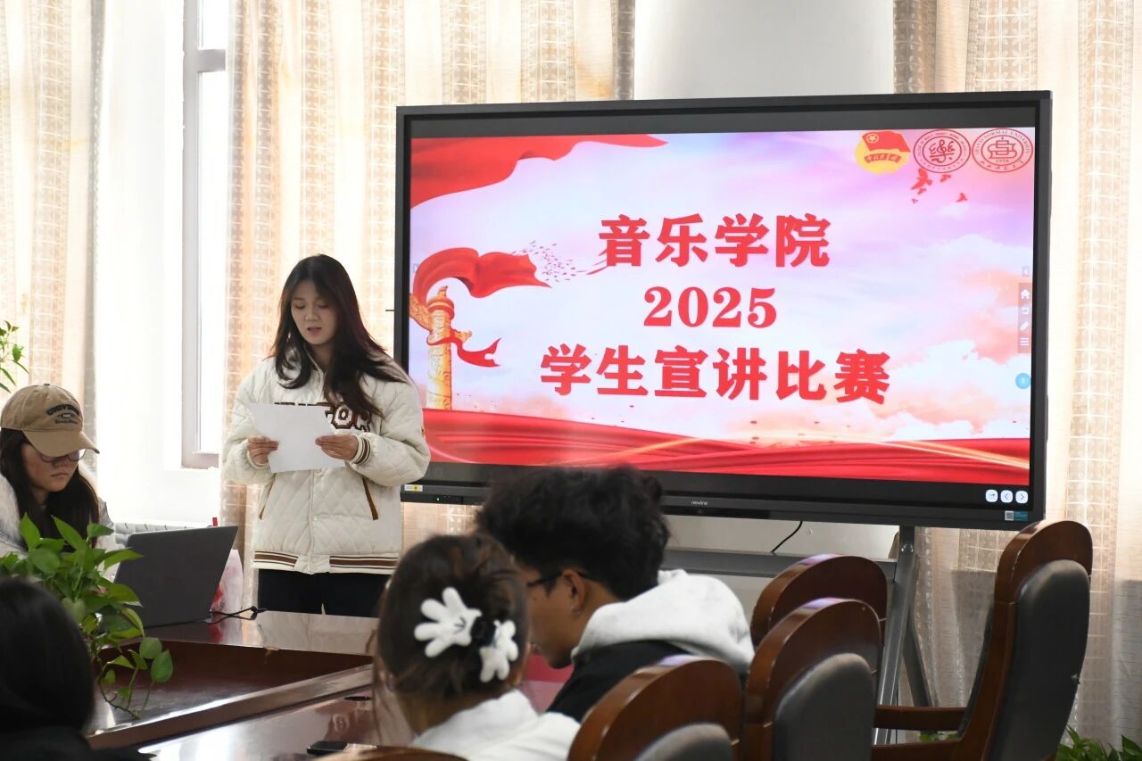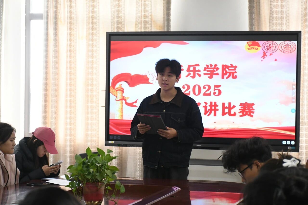 比赛现场气氛热烈。选手们紧扣上述主题,结合音乐专业特色与个人实践感悟,以生动案例、详实数据和富有感染力的表达,全方位展现新时代青年传承红色基因、创新传统文化、思考科技发展、践行志愿服务的青春风貌。整场比赛兼具理论深度与青春活力,充分彰显当代大学生与时代同频共振的责任担当。