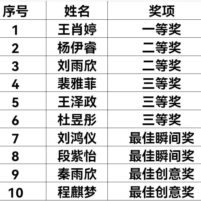 三等奖: 裴雅菲