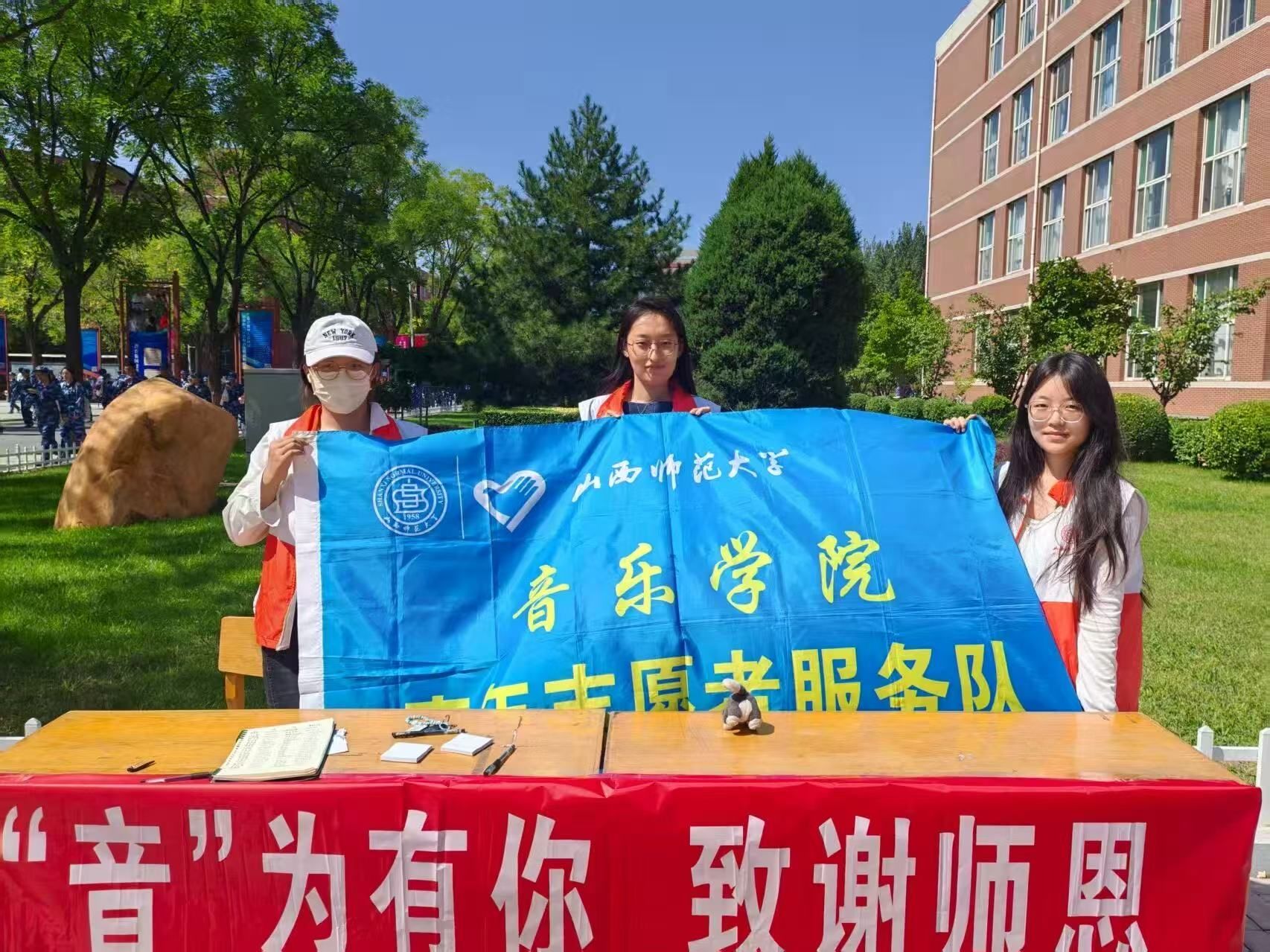 2025年9月10日,学院在教学3号楼与4号楼之间举办了以“感恩教师”为主题的系列互动活动。活动由“答题闯关”“师情永存”留言墙和“歌声颂师恩”三部分组成,吸引了近300名学生参与,现场气氛热烈温馨。