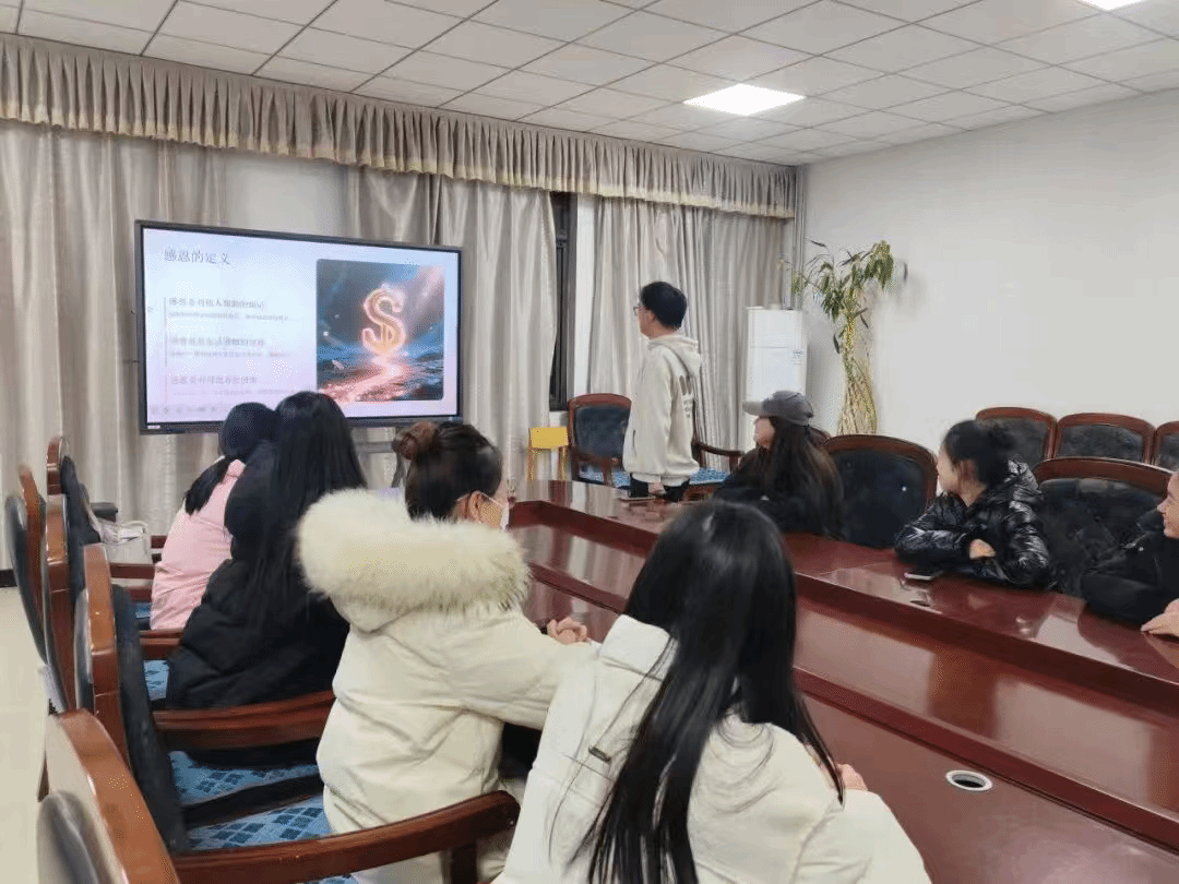 活动筹备阶段,工作人员精心打磨贴合主题的PPT课件,细化活动策划书内容,明确各环节流程分工与场地布局细节,为活动有序推进筑牢基础。活动现场,趣味互动小游戏率先点燃氛围,让同学们在轻松参与中拉近彼此距离;随后活动代表上台解读主题核心内涵,带领大家分享生活中的温暖瞬间,深入探讨感恩文化的情感内核与实践路径,全程秉持“安全第一、协作高效”原则,各小组密切配合保障活动顺畅开展。