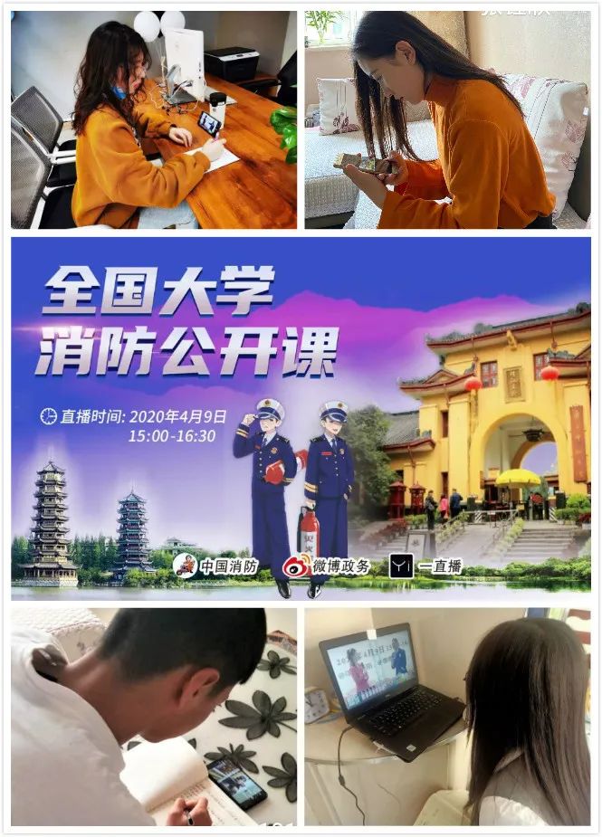 为做好开学复课消防安全指导服务工作,普及消防常识和逃生技能,提高学校消防安全宣传教育工作水平和大学生群体的消防安全素质,国家应急管理部消防救援局定于4月9日15时,通过网络直播方式开展"大学消防公开课"直播活动。我院组织全体学生通过网络积极收看直播。