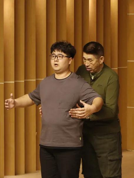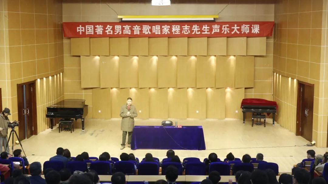 程志先生大师课分为讲座和舞台讲授两个部分。他结合自己多年的教学经验和演唱经验,讲授了他自己对声乐的理解。他指出,声乐是歌唱的艺术,学生从低年级就要开始将规范树立起来,这是声乐演唱的基础。随后程志先生结合自己教学过程中的趣事为同学们讲解了声乐技巧和语言的重要性。