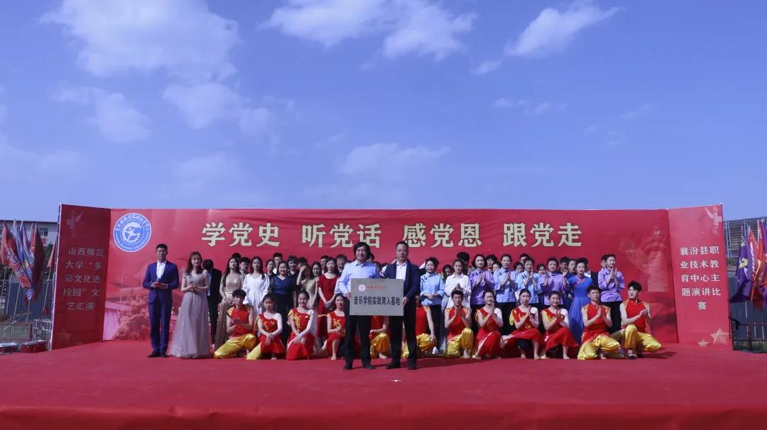 演出结束后,刘明星院长与襄汾县职教中心校长进行了“必赢3003no1线路检测中心实践育人教育基地”的揭牌仪式。