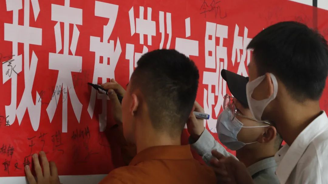 现场同学积极响应,纷纷在诚信横幅上签下名字,表示对活动的支持和对诚信的承诺。