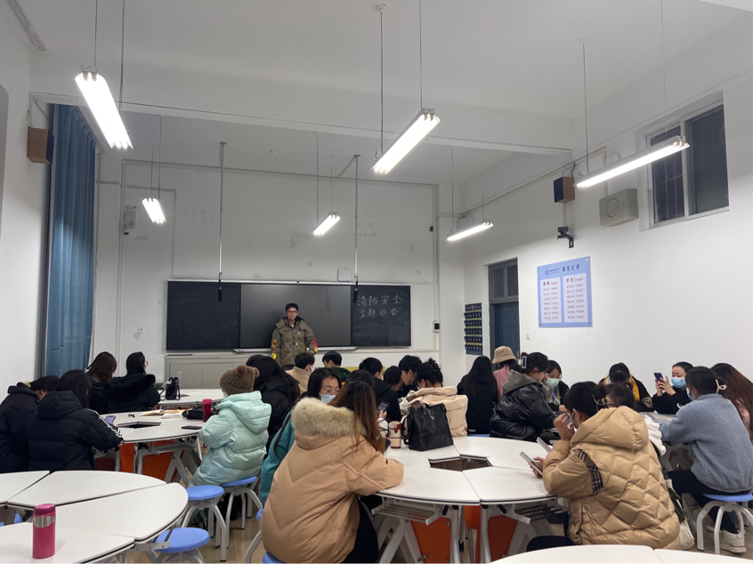 2204班向同学们介绍消防案例,普及安全用电知识,介绍消防器械正确使用方法等,采用讲解及观看视频方式,宣传校园消防安全的相关知识。