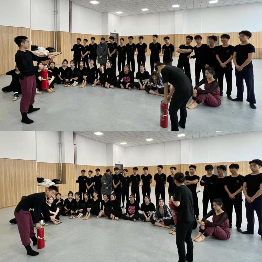 2203班采用演讲与相互提问的方式,让学生自主谈学习交流消防安全的认识,同时向大家展示了消防栓及消防灭火器的使用方法。