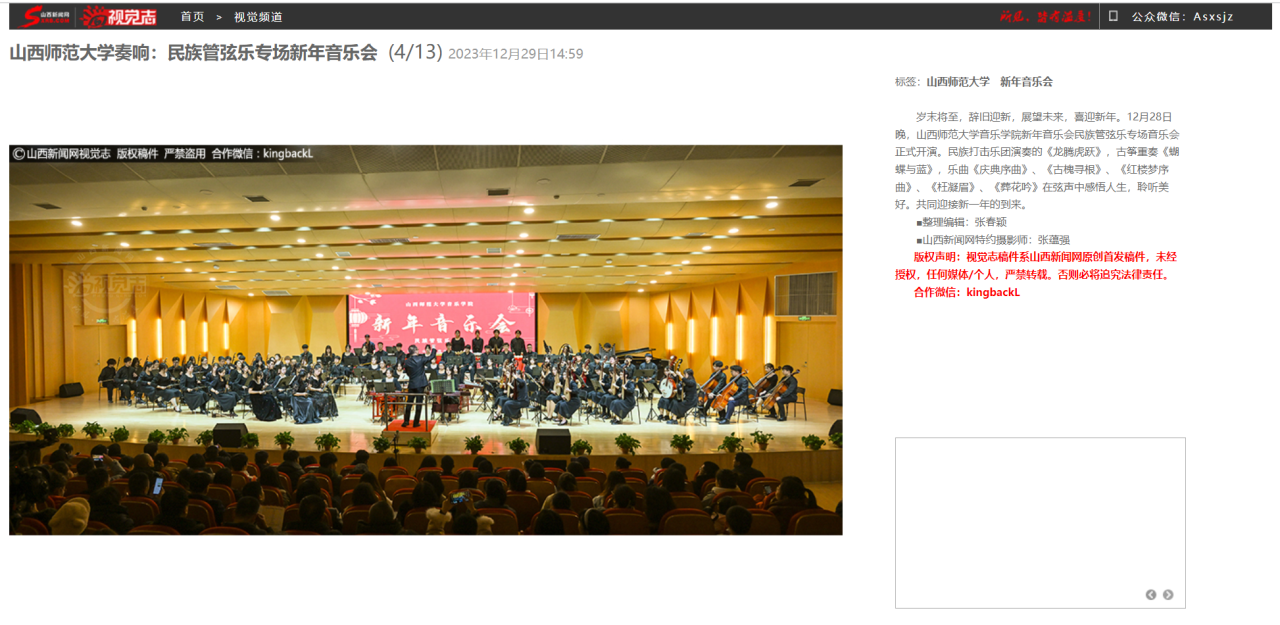 近日,由必赢3003no1线路检测中心必赢3003no1线路检测中心新年音乐会——民族管弦乐专场获山西新闻网报道。