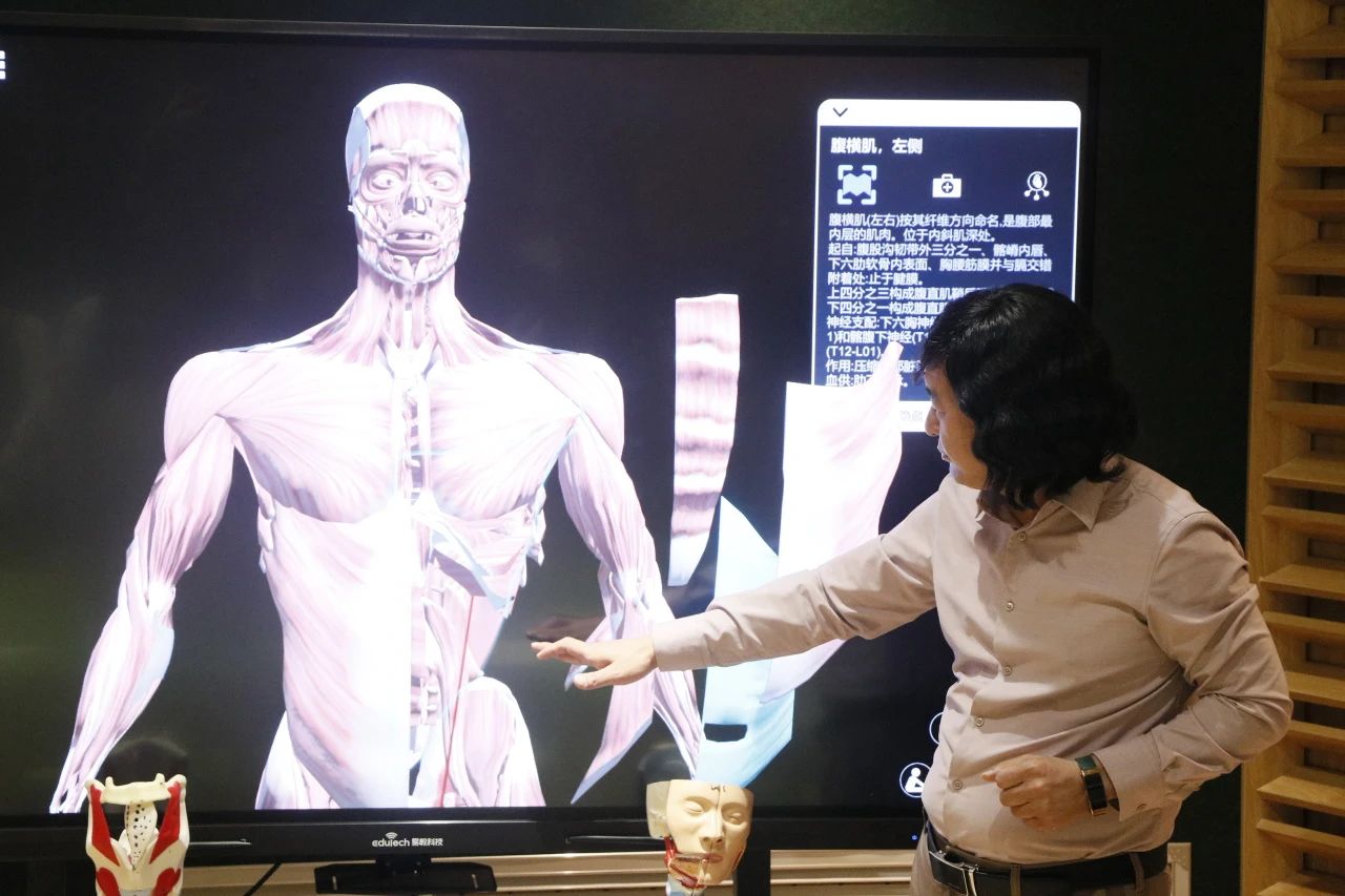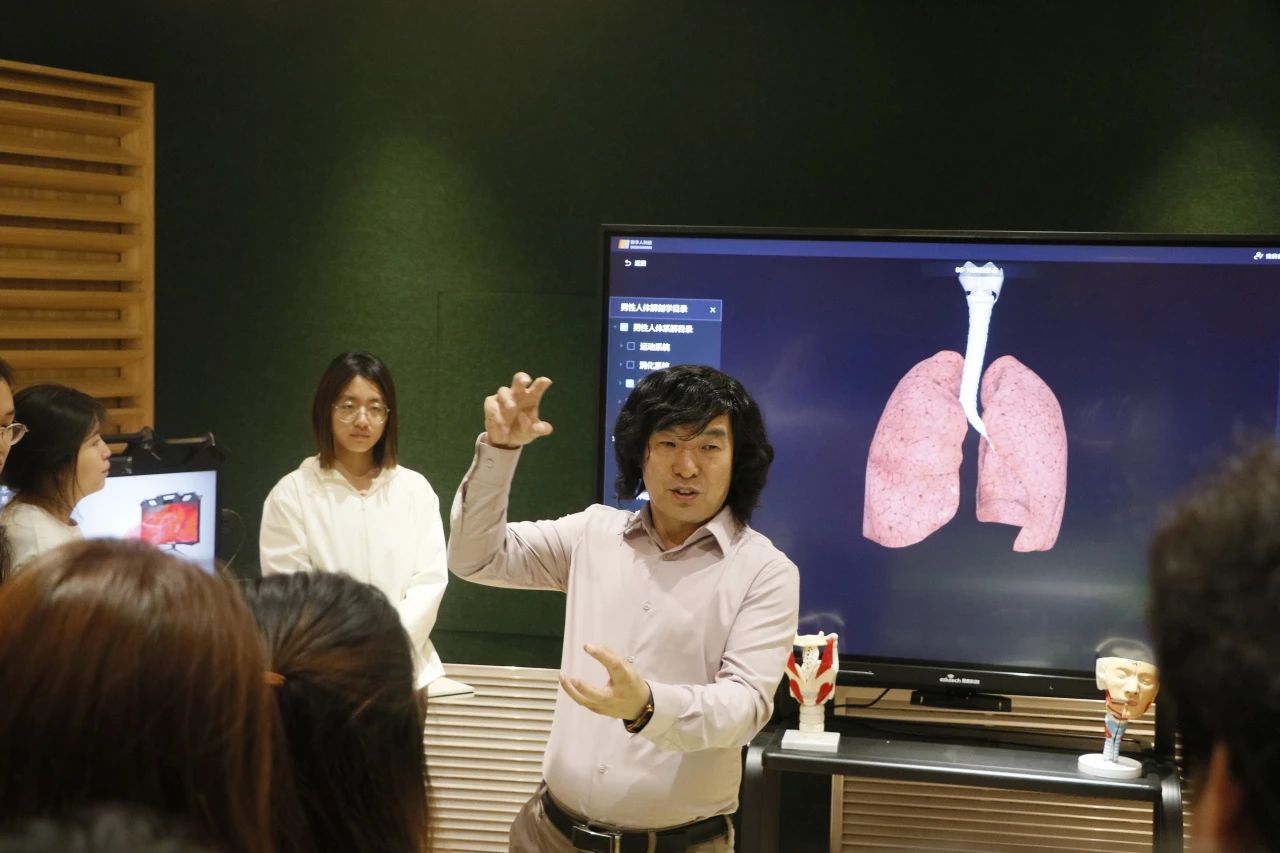 比赛结束后,刘明星院长带领所有参赛选手前往“虚拟仿真发声原理可视化教学实验室”进行参观学习,刘明星院长亲自做示范,为大家讲解声乐的发声原理和身体发声构造,并与学生互动,为学生提供更加真实,直观,生动的学习体验。日后,我们也会不断完成教学方式,不断丰富声乐学习内容和学习形式,打造出更高层次的教学特色。