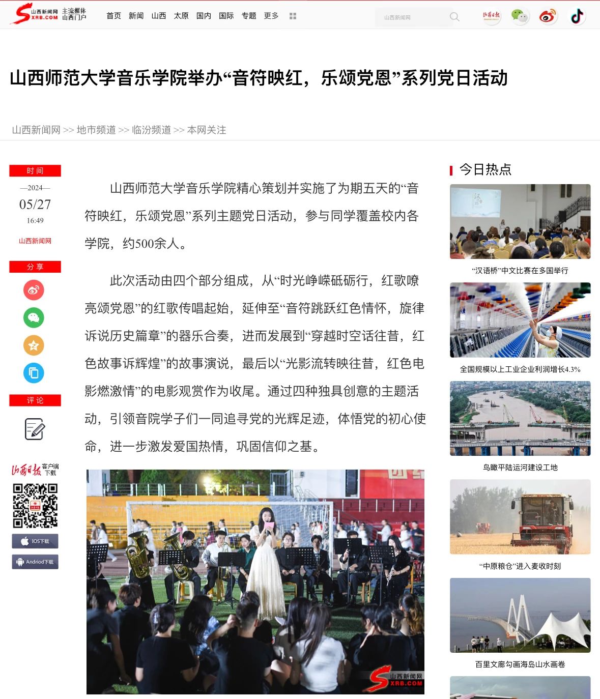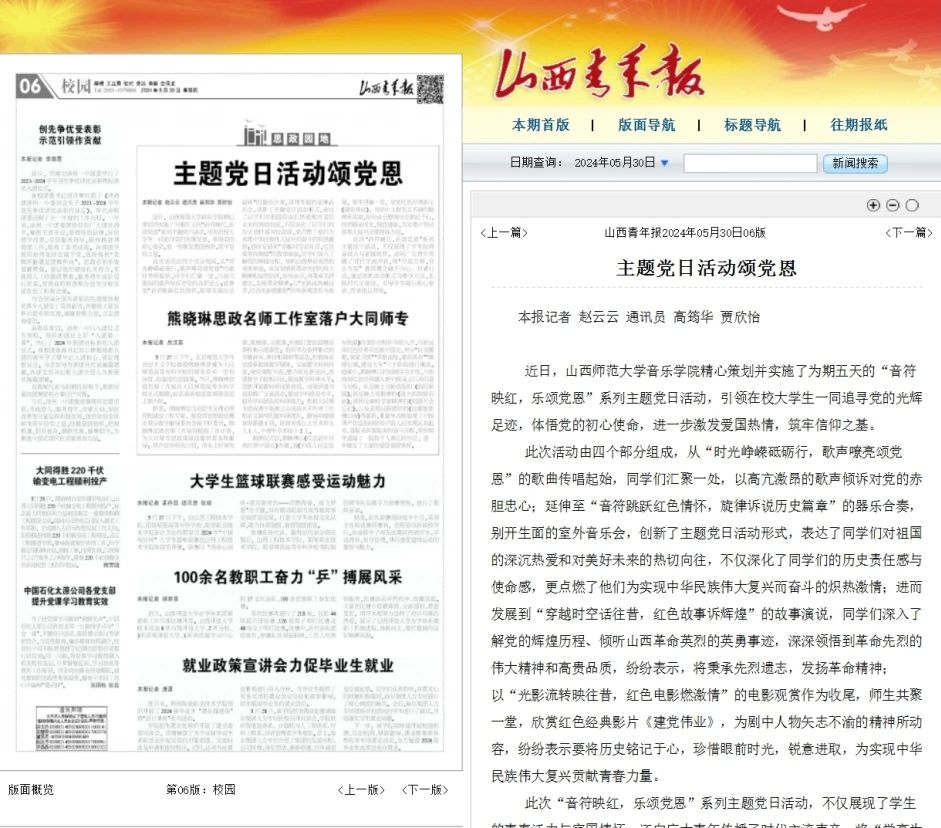 近日,由必赢3003no1线路检测中心必赢3003no1线路检测中心举办的“音符映红,乐颂党恩”系列主题党日活动获山西青年报、山西新闻网报道。