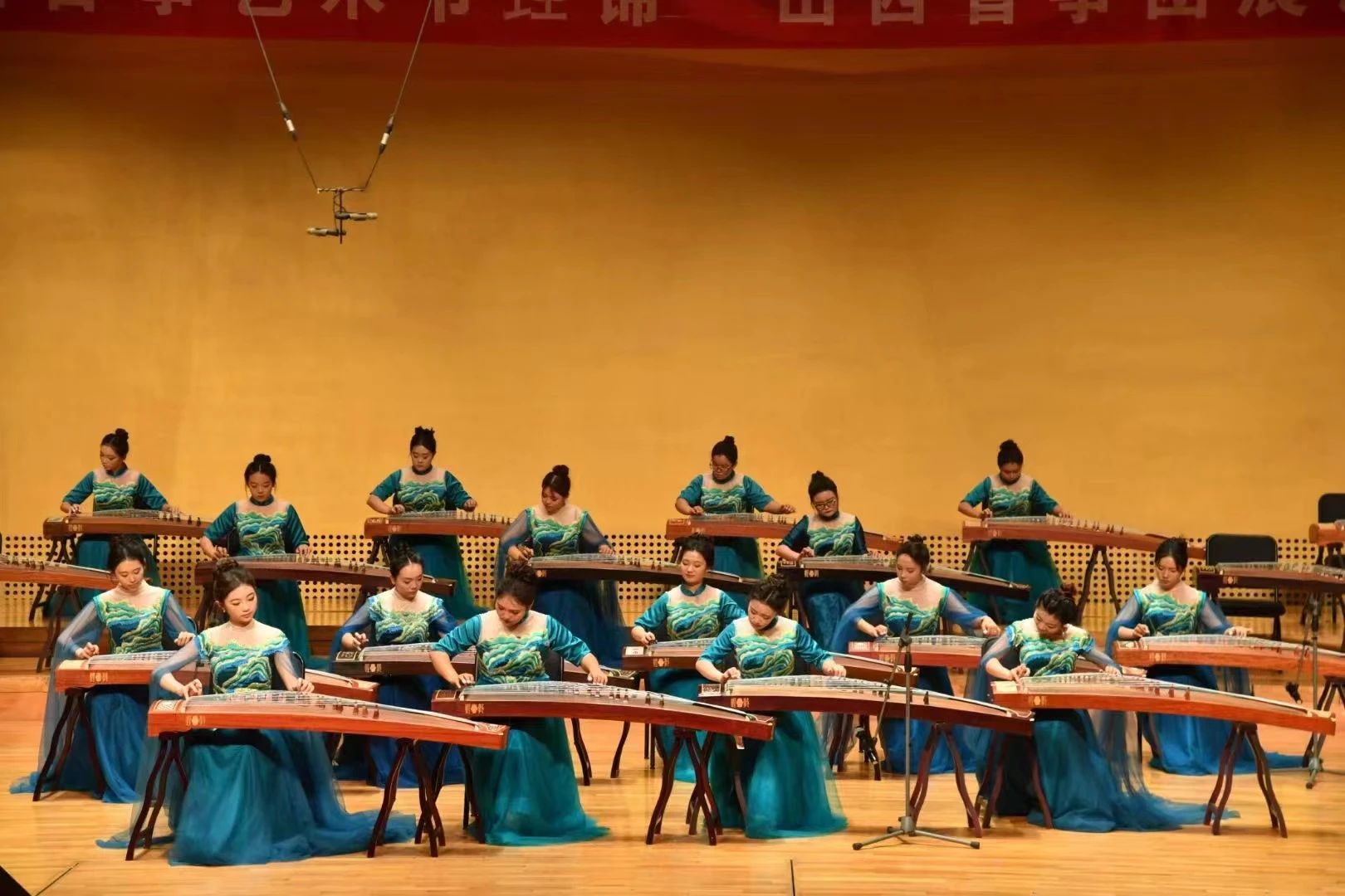 除此之外我院教师,成燕老师、陈展宇老师共同受邀出演了本次音乐会,与山西省古筝研究会的老师们共同演绎压轴节目《在希望的田野上》。老师们精湛的琴技顷刻间征服了在场所有的观众,仿佛置身于广袤无垠的田野之上,金色的阳光穿透薄雾,洒在郁郁葱葱的稻穗与随风轻摆的麦浪之上,每一声筝音,都是大自然最真挚的低语,讲述着生命不息、希望永存的故事。
