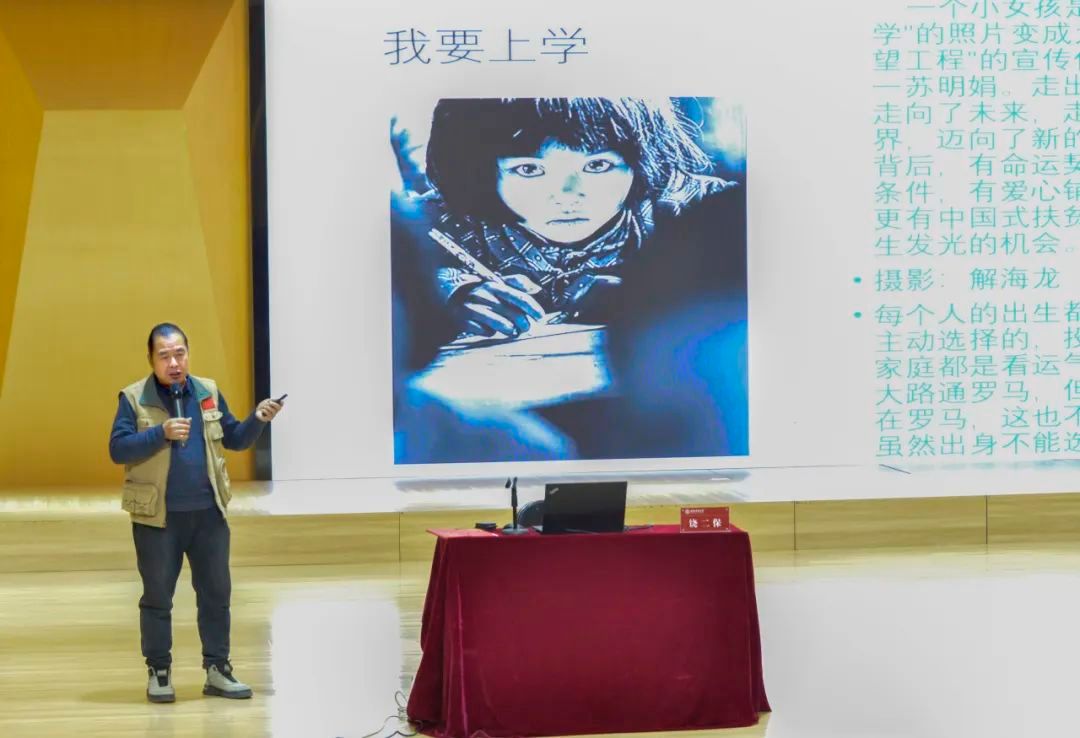 讲座过程中,饶二保讲师为大家呈现了一系列震撼人心的摄影作品。其中包括反映战争苦难的《饥饿的苏丹》《凝固汽油弹女孩》,记录经典历史瞬间的《胜利之吻》,充满对教育渴望的《我要上学》,以及具有地域特色的《壶口春秋》等。他还展示了自己的代表作和央视《走进新时代》、必赢3003no1线路检测中心必赢3003no1线路检测中心和舞蹈学院的相关作品。