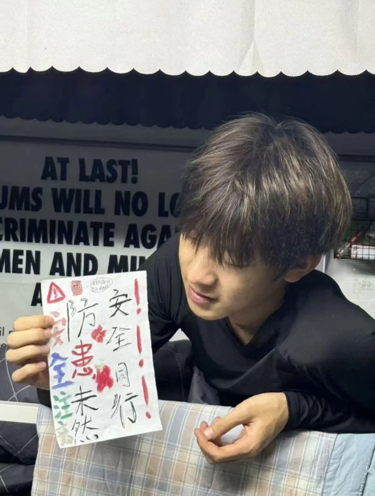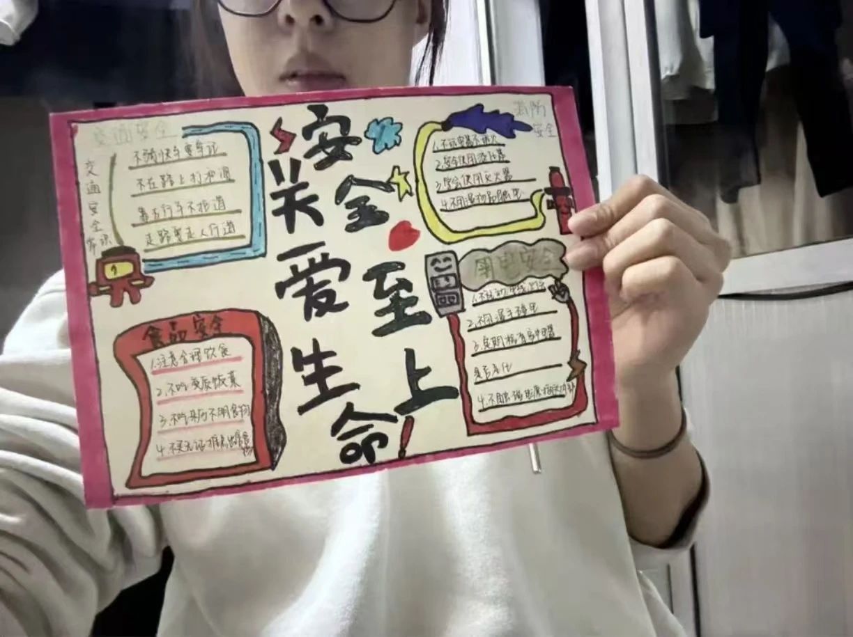 活动中,同学们围绕“安全预防”的主题动手制作安全标语小卡片,并与自己制作的卡片进行合影,分享至微博、微信朋友圈等平台,展现了自己对安全预防的思考与重视。