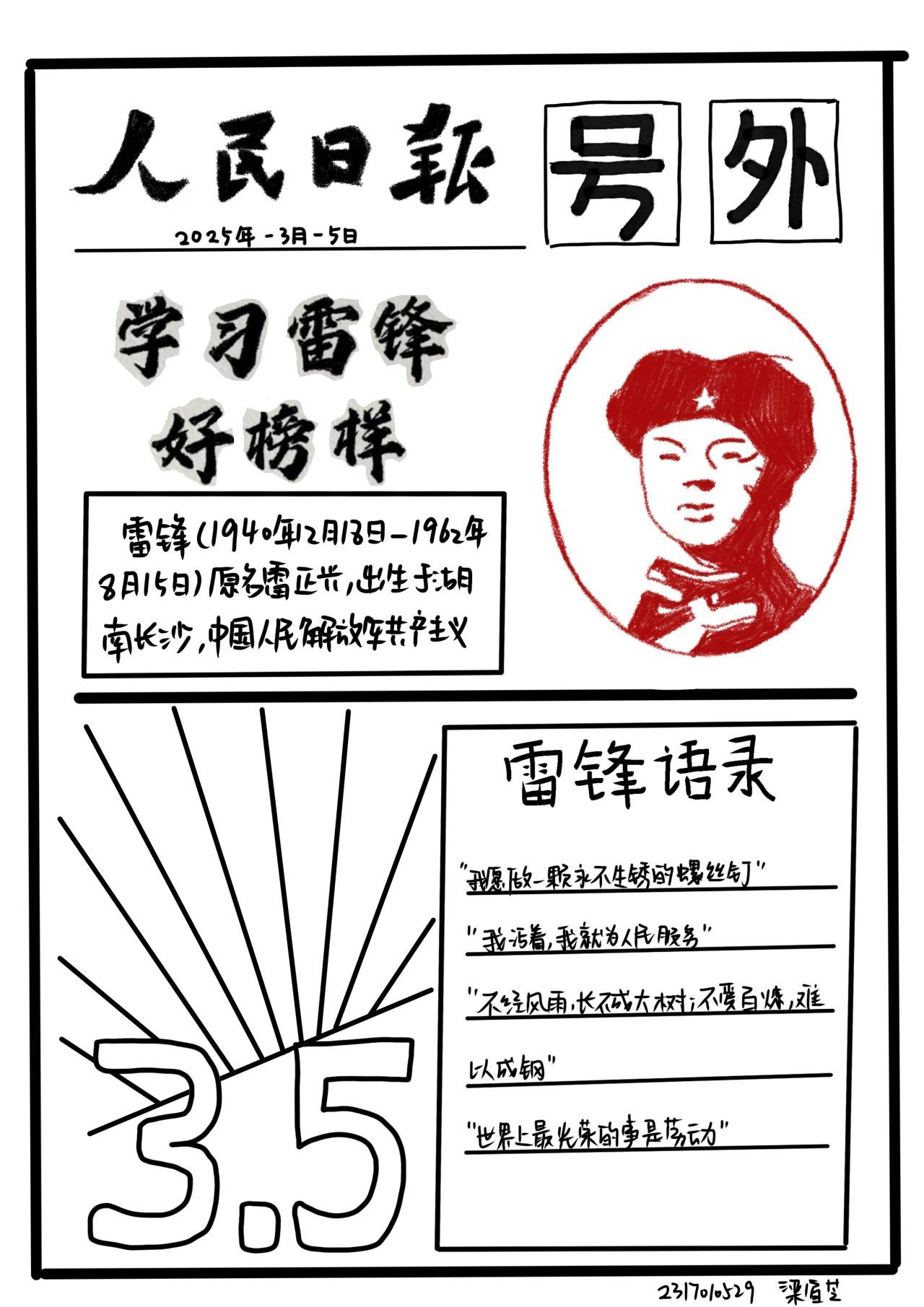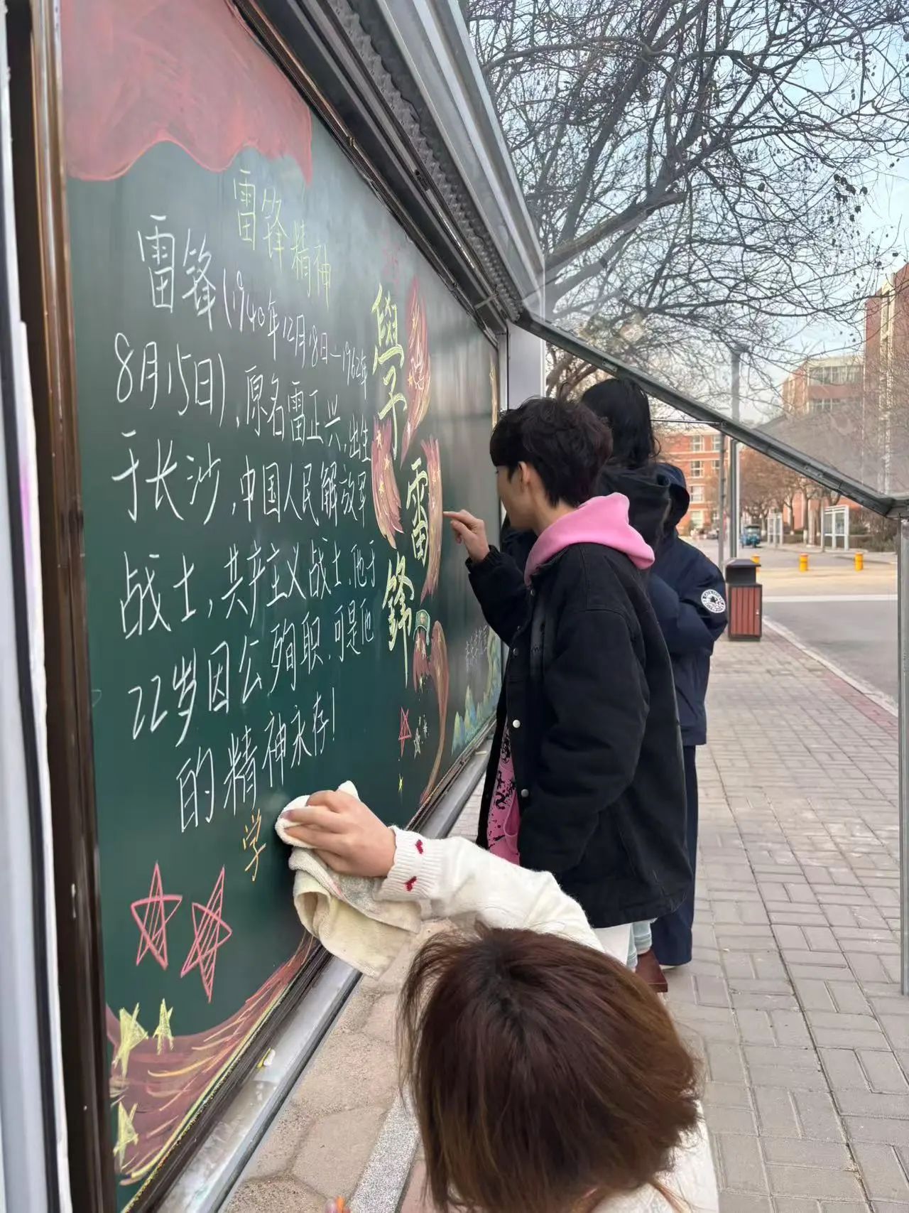 在活动中,同学们热情高涨,纷纷投身创作。大家分工协作,查资料、做设计、用画笔在手抄报上绘出雷锋模样,讲述感人故事,字里行间满是对雷锋精神的理解感悟。同时,在校园里,负责黑板报的同学用彩色粉笔勾勒雷锋助人场景,并撰写事迹感悟,字字句句间,将雷锋精神跃然笔下,深埋心中。