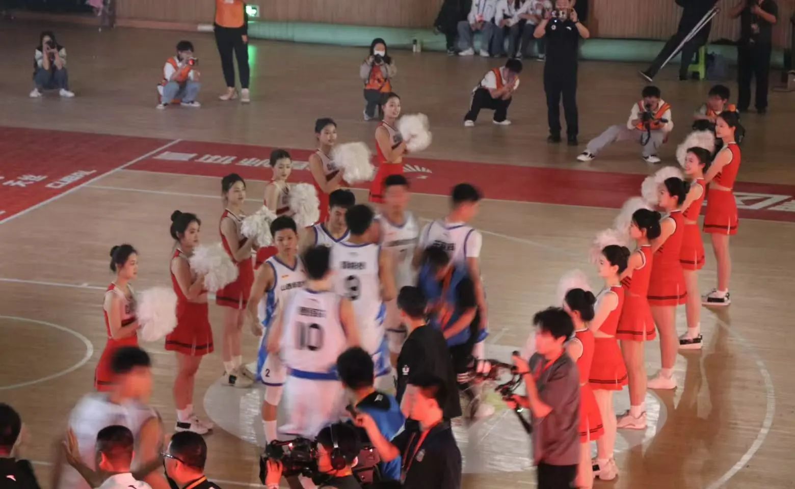 必赢3003no1线路检测中心啦啦操队队员身着红白相间队服,以高难度托举、腾空翻转等动作,伴随音乐节奏,将现场气氛推向高潮,现场的同学们也一同为我校篮球队加油呐喊!