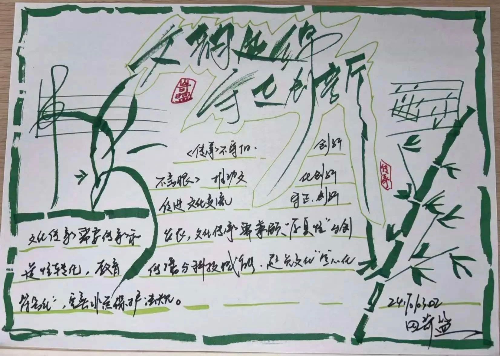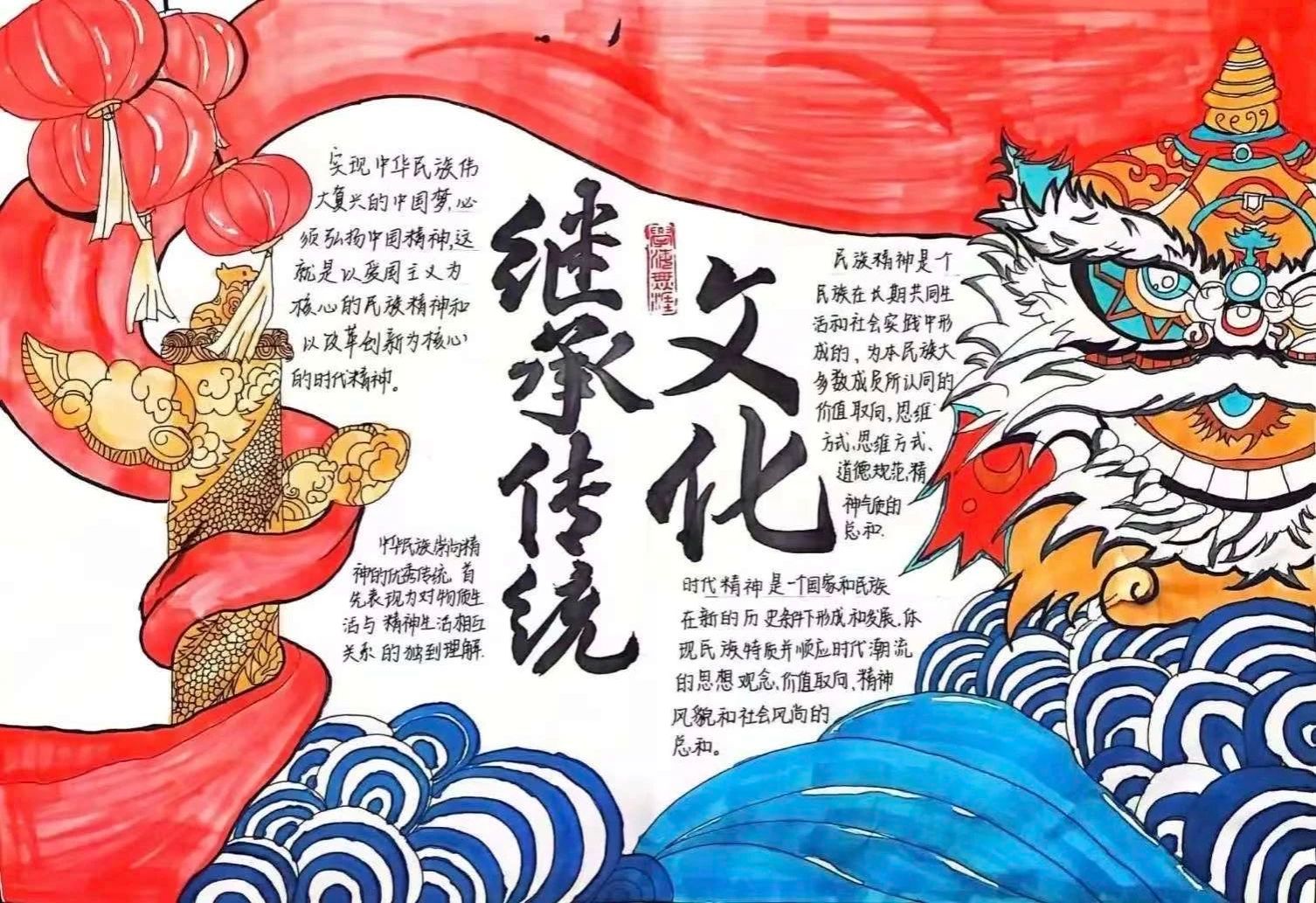 在活动中,同学们展现出了极高的热情和创造力,他们以灵动的笔触勾勒传统纹样,从传统节日习俗到经典诗词歌赋,从民族乐器造型到非遗文化展示,一幅幅精美的手抄报不仅承载着深厚的文化底蕴,更彰显出同学们独特的艺术视角和创新巧思 。大家纷纷表示,在创作过程中,通过查阅大量资料,对传统文化有了更全面、更深刻的认识。