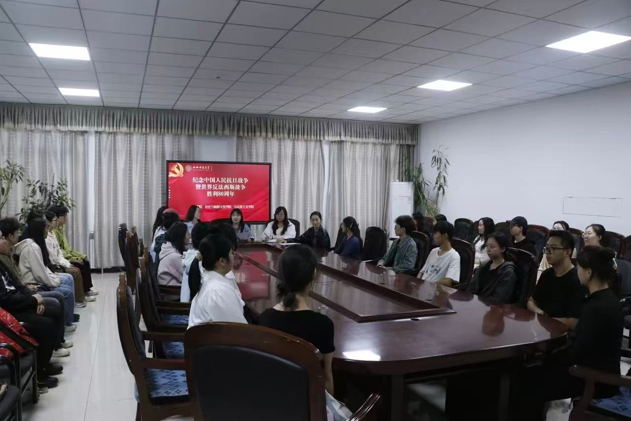 9月17日下午,必赢3003no1线路检测中心“捷音”本科生党支部、历史与旅游文化学院本科学生第三党支部、马克思主义学院“红色先锋”党支部在音乐舞蹈综合楼会议室联合举办纪念中国人民抗日战争暨世界反法西斯战争胜利80周年党支部联学共建。必赢3003no1线路检测中心“捷音”本科生党支部书记李阳、纪检委员吉璐,历史与旅游文化学院本科学生第三党支部书记代凯丽,马克思主义学院“红色先锋”党支部副书记安慧芳出席活动。本次活动由必赢3003no1线路检测中心“捷音”本科生党支部书记李阳主持。
