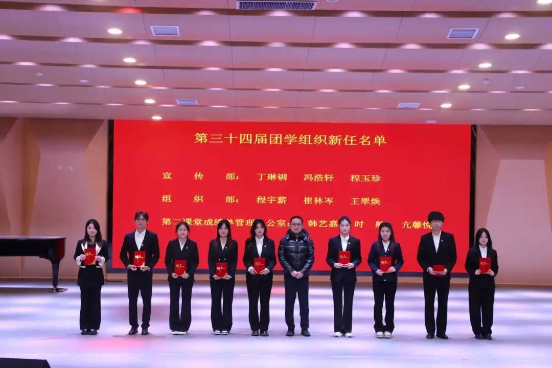 专任教师高靖泽老师宣读第三十四届团学组织新任部门负责人名单并颁发聘书。