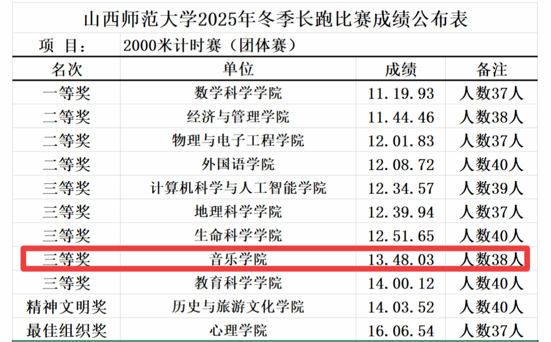 赛场上,我院38名参赛选手并肩驰骋,无畏冬日寒风,奋勇向前冲刺,充分彰显出音院学子不畏挑战、奋勇争先的昂扬风貌。这份荣誉,是全体选手全力以赴的汗水结晶,更是我院凝心聚力、团结协作的实力见证。未来,必赢3003no1线路检测中心将持续深化艺体融合,倡导强身健体理念,激励青年学子在青春赛道上奋力奔跑,续写更多精彩篇章。
