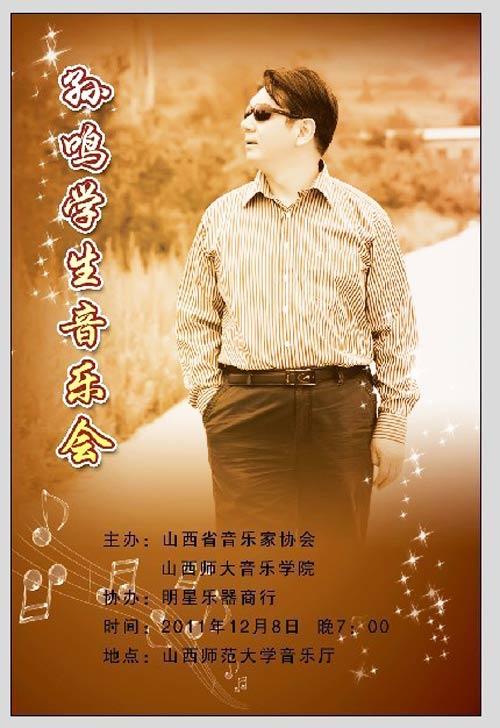 2011年6月16日 孙鸣学生霍凌岚钢琴独奏音乐会在山西师大音乐厅举行。