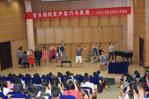 2014年6月2日至3日,美国卡内基大学音乐剧主席和系主任科琳·奈斯博士等一行19人应邀来我校举办学术交流活动。交流活动期间,美国卡内基大学师生上演了他们精心编排的音乐剧《近乎正常》,举办了学术讲座《音乐剧的发声技巧与表演》。