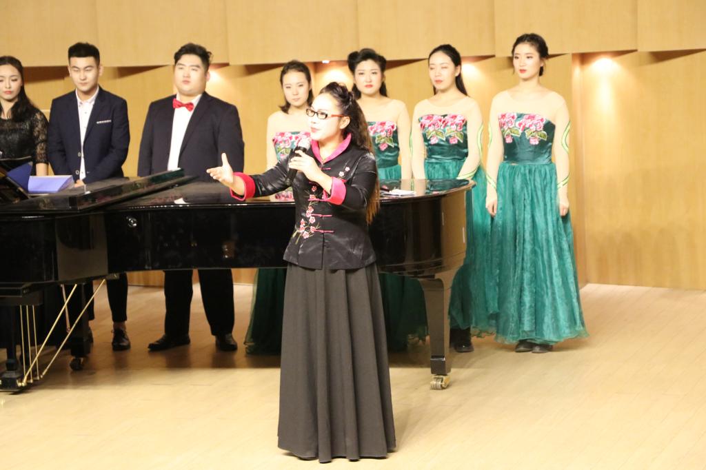 中场结束由主持人悦贺栋和特邀嘉宾贺雪云分别把《三套车》和意大利歌曲《求爱神给我安慰》送给在座的各位老师和同学。