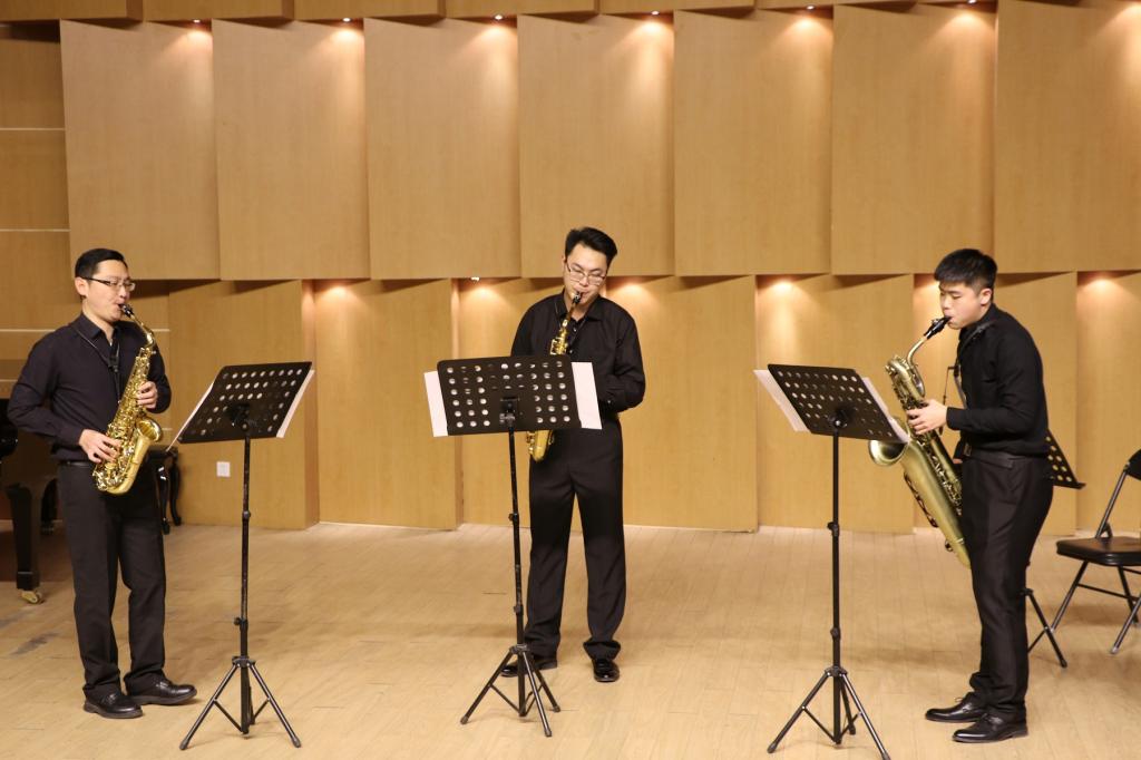 一曲单簧管的四重奏《自由射手》拉开了音乐会的序幕,青年单簧管教师樊霄与青年钢琴教师郭庆合作的一曲《单簧管协奏曲-克拉玛》其潇洒的台风、激情投入的演奏,赢得了观众们热烈的掌声。随后樊霄老师与他的学生们共同合作了萨克斯三重奏《星球大战》,经久不息的掌声再次响起。青年二胡教师李筠表演了《迷糊调》伴随着扬琴声清亮绵远,意趣高雅,听起来让人如痴如醉。而后又与民乐系小乐队共同合奏了《奔驰在千里草原》充分展现了中国传统民族器乐的魅力和独特韵味。