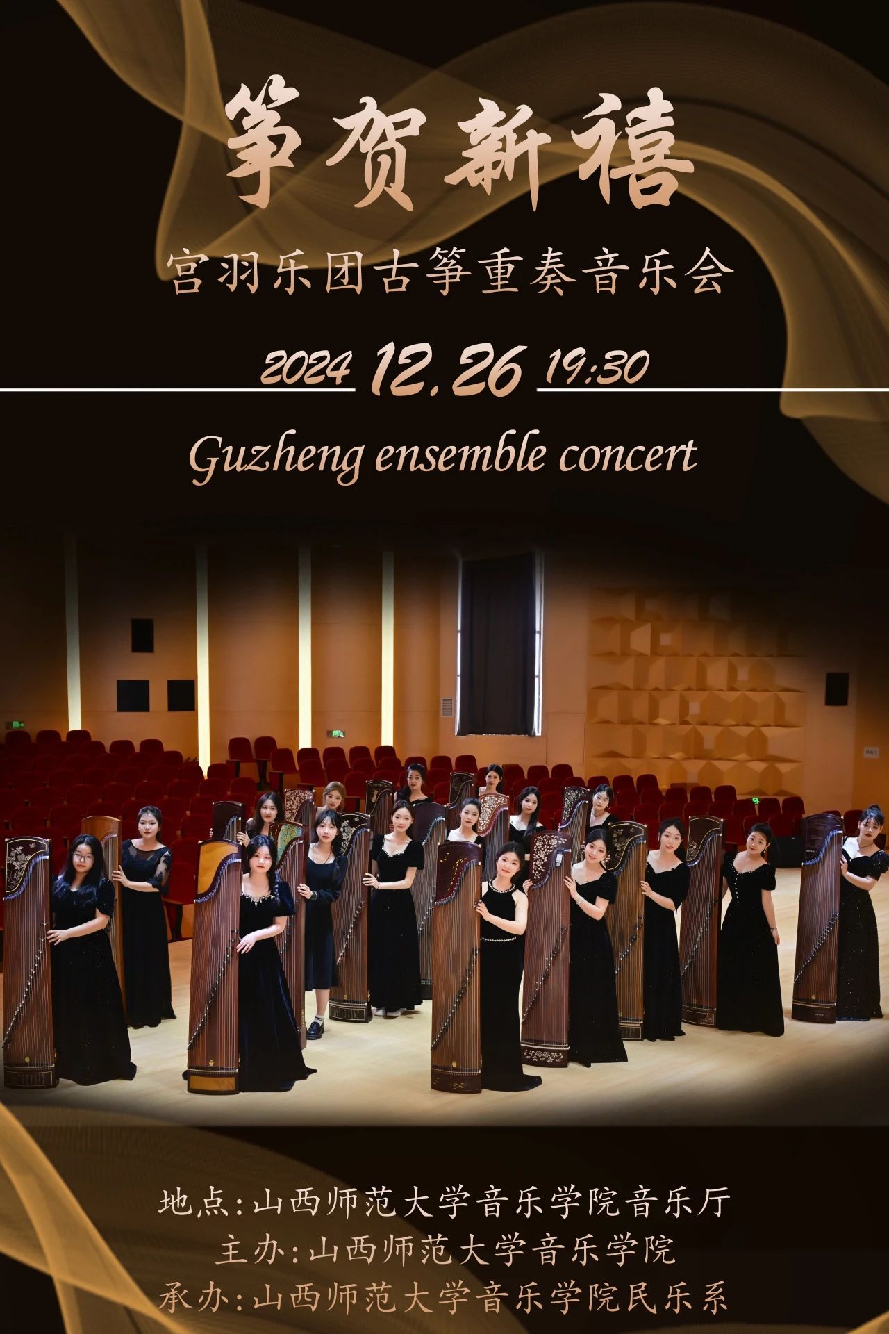 与我们一同沉浸在古筝的悠扬旋律里,于弦动声起间,开启一场跨越时空的晋韵文化之旅、迎接福瑞满盈的蛇岁新禧,见证宫羽乐团的风采,聆听这场不可错过的音乐盛典!