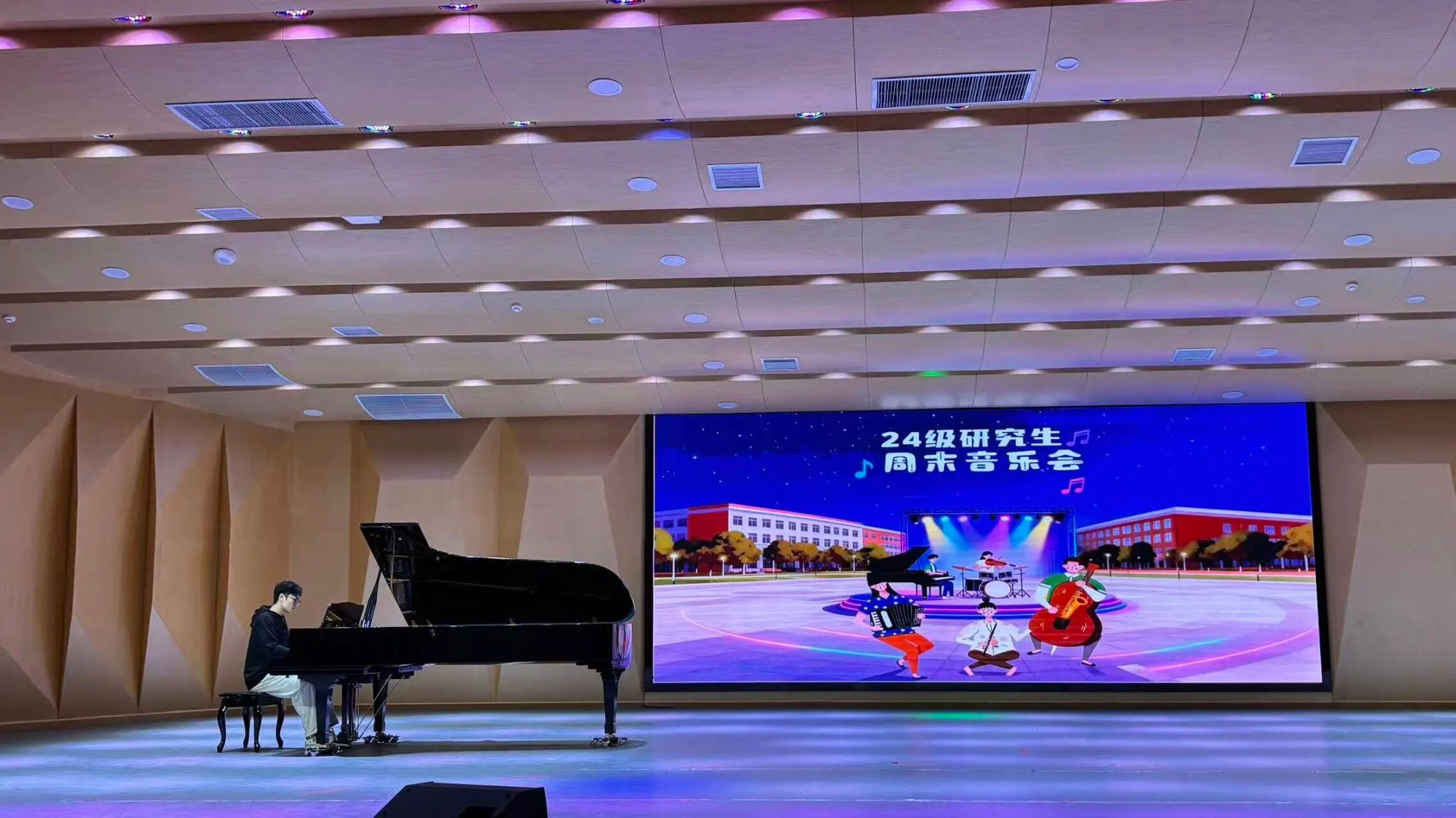 同学们怀揣着对音乐的热爱与热情,依次登台表演,用饱满的情感和专业的演唱,为大家呈现出一场风格多元、充满青春活力的音乐演出。台下掌声雷动,欢呼声此起彼伏,整个现场沉浸在音乐与欢乐交织的热烈氛围中。